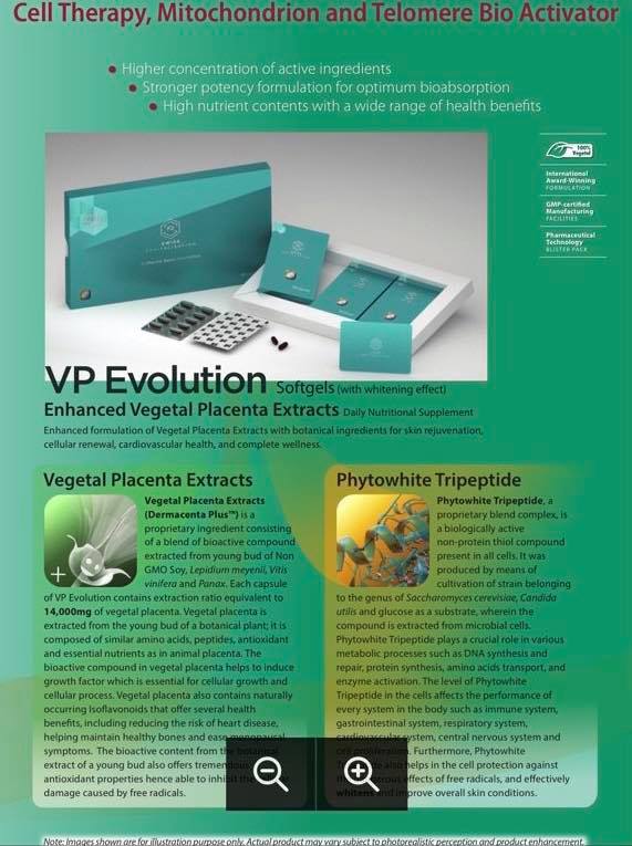Chiết xuất tế bào từ thực vật ở mỗi viên nang VP Evolution Plus chứa tỷ lệ chiết xuất tương đương 14.000mg nhau thai thực vật.